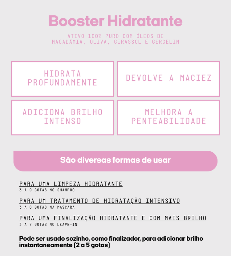 potencializa hidratação, brilho e maciezPreço normal R$ 69,00Preço normalPreço unitário / porou 2x de R$ 34,50
