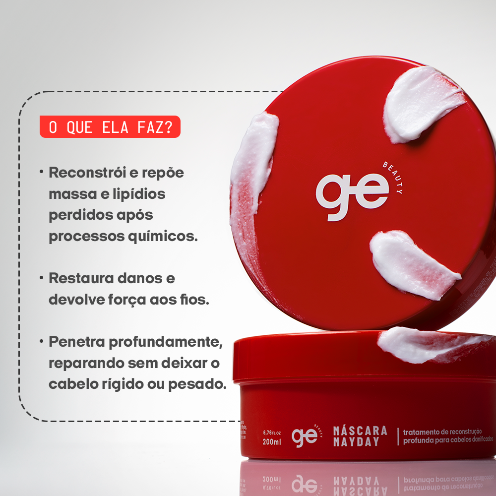 hidrata, repara, protege até 230 °C, dá brilho e controla o frizz